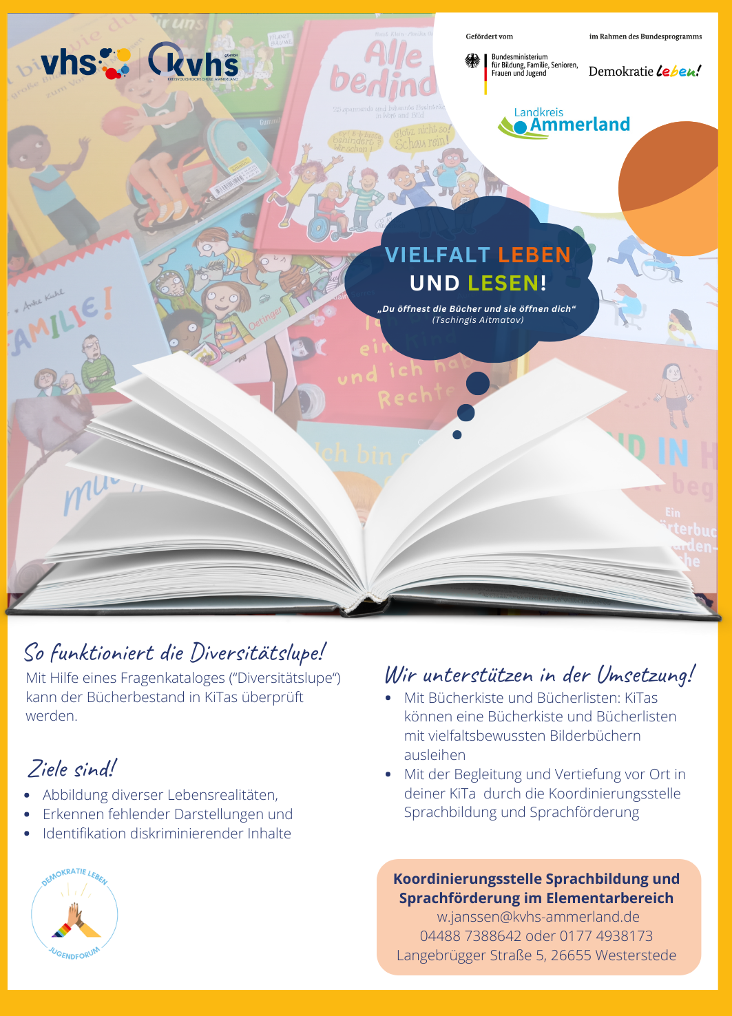 Die Kreisvolkshochschule (kvhs) Ammerland gGmbH betreibt die Koordinierungsstelle in Zusammenarbeit mit dem Jugendamt des Landkreises Ammerland. Ziel ist die Umsetzung des seit 2018 im niedersächsischen Kitagesetz verankerten Auftrags zur alltagsintegrierten Sprachbildung und Sprachförderung im Elementarbereich.